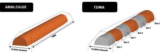 The DMR ID is obtainable from CLICKING HERE just sign up and an ID will be issued. You will need a pdf copy of your licence which you can download from Ofcom if you don't already have a pdf version. Ofcom can be found CLICK HERE DMR is a TDMA system - TDMA is Time Division Multiple Access. Basically, it's a digital system that has two time slots, allowing two concurrent conversations to take place on the same frequency. This is easier to understand by viewing this diagram: |
